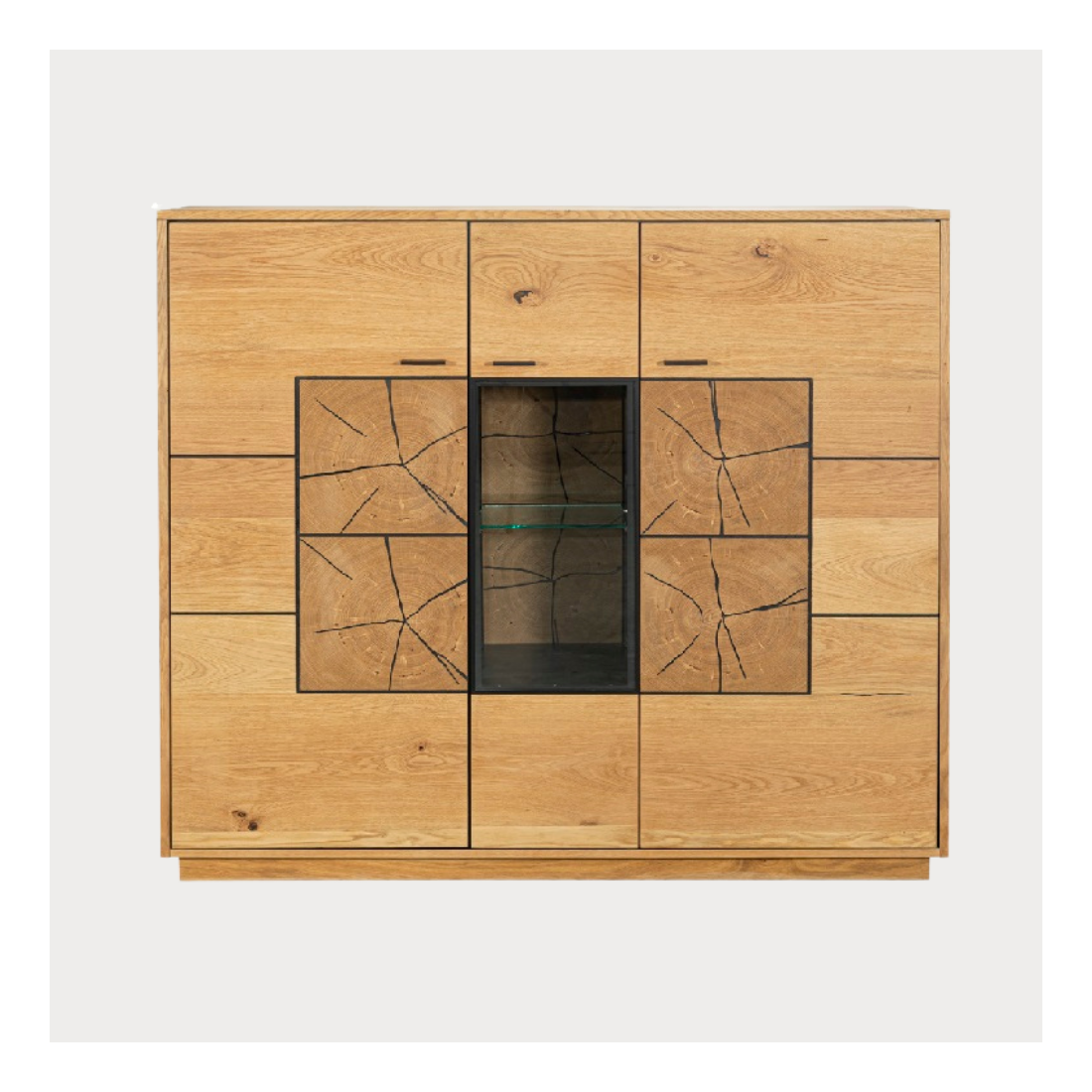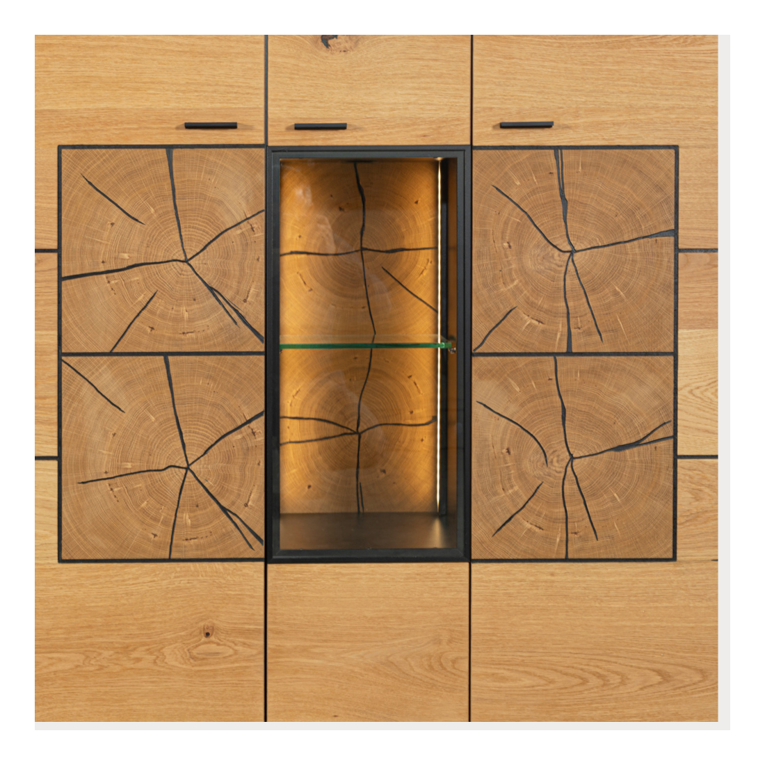Material: Furniruit si elemente de decor din lemn furniruit, sticla, polita vizibila din sticla