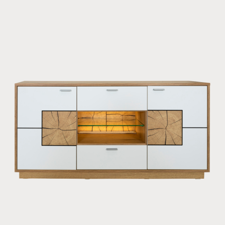Comoda Urbano White 170 Cm Cu 2 Usi, 2 Sertare Si 1 Nisa Alb Si Natur